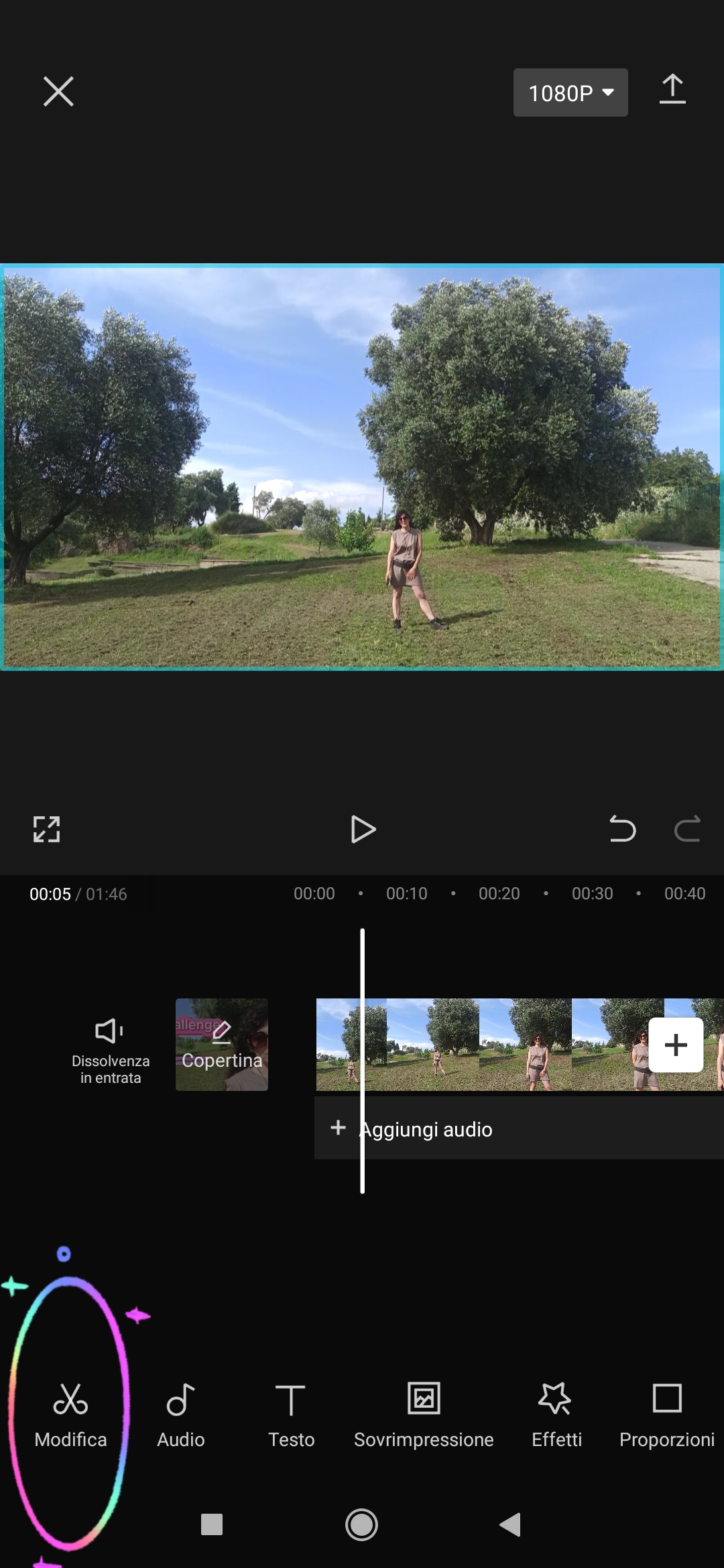 We can go to change the volume of the track, apply effects, insert audio by pulling it from a clip on our smartphone or choose music or record the narrator’s voice directly on the timeline. A ‘useful option is copyright that checks for the presence or absence of music that is protected by it.